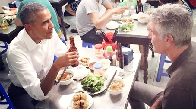 Bữa bún chả của ông Obama và đầu bếp Anthony Bourdain tại Việt Nam năm 2016.