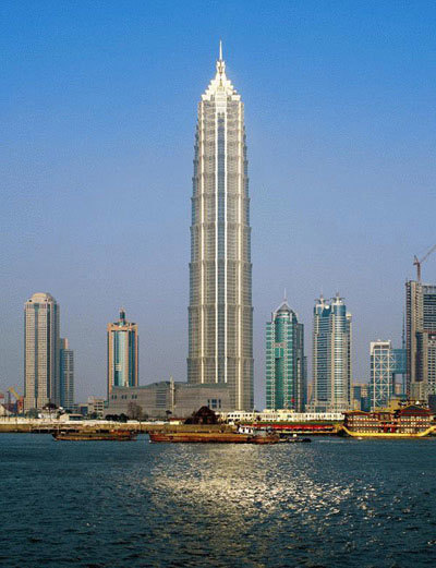 Tòa tháp Jin Mao ở Thượng Hải (Trung Quốc) được xây dựng vào năm 1999, với chiều cao 421m (1,381 ft.) và 88 tầng.