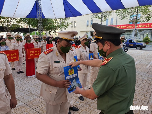 Tham dự có ông Ngô Minh Châu, phó chủ tịch UBND TPHCM; thiếu tướng Lê Hồng Nam, giám đốc Công an TPHCM; thiếu tướng Trần Đức Tài, phó giám đốc Công an TPHCM cùng 100 cán bộ chiến sĩ được tăng cường về công an xã.