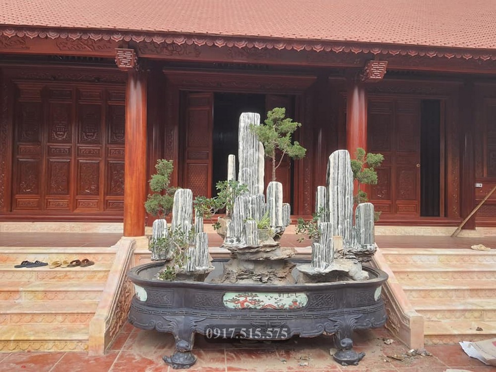 Gia chủ cần lựa chọn hòn non bộ bằng đá Tuyết Sơn theo diện tích không gian lắp đặt để không tạo sự bí bách và chật chội.