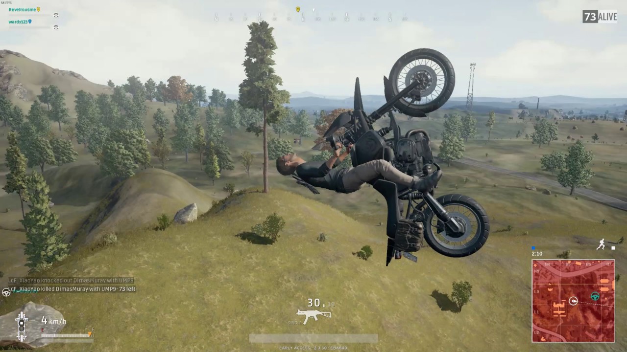 10. Rất nhiều bạn đã gặp vấn đề lật xe máy trong PUBG. Nhiều trường hợp xui xẻo còn dẫn đến tử vong hoặc bị thương rất nặng sau những cú té xe. Đó là vì các bạn đó chưa biết cách điều khiển chiếc xe của mình khi bay trên không. Phím “Space” và “Ctrl trái” sẽ giúp bạn điều khiển chiếc xe của mình thăng bằng trên không trước khi tiếp đất. Ngoài ra các bạn cũng có thể thực hiện các pha lộn nhào Backflip Frontlflip hoành tráng nữa.