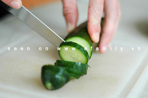 2. Để bắt đầu thực hiện, bạn hãy cắt bỏ một miếng ở đầu quả dưa chuột. Sau đó bạn thái chúng thành những lát mỏng hình tròn. Không nên cắt dưa chuột thành những miếng quá dày vì chúng có thể bị rơi ra khi bạn áp dụng trên mắt hoặc khuôn mặt.
