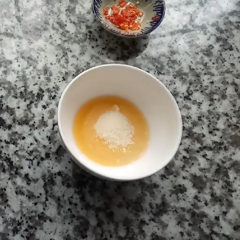 Bạn vắt lấy cốt 1/2 trái chanh cho vào chén, thêm 3 muỗng canh đường, 4 muỗng canh nước mắm (hoặc nước tương tùy ý thích).