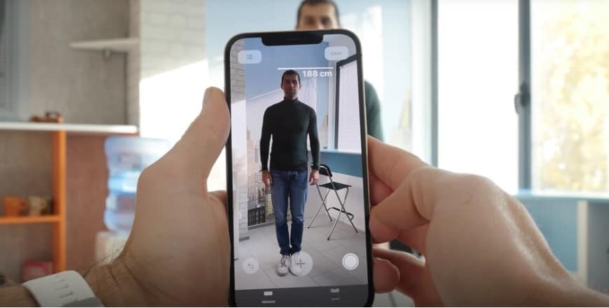 Tiếp theo là ứng dụng Đo (Measure). Nếu đang sở hữu một chiếc iPhone 12 Pro series, bạn sẽ có cảm biến LiDAR tuyệt vời cho các tác vụ thực tế tăng cường. Một ví dụ đơn giản là chỉ cần mở ứng dụng Measure và để con bạn hoặc bạn bè của bạn đứng trước máy ảnh. Nó sẽ cho bạn biết chúng cao bao nhiêu với độ chính xác khá tốt.