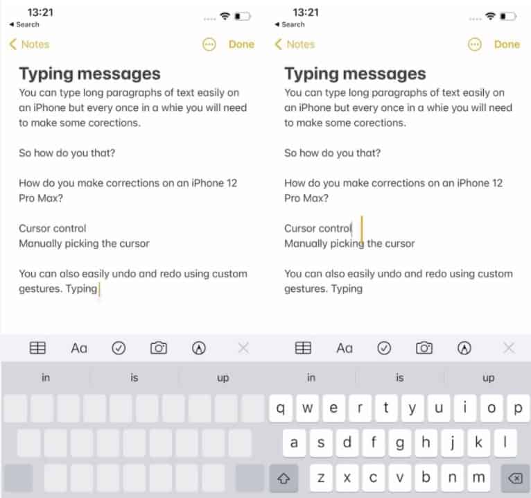Tiếp theo, hãy đi sâu hơn một chút với một số mẹo nâng cao hơn. Việc viết đoạn văn dài trên thiết bị di động sẽ khiến bạn dễ mắc một số lỗi và thường phải quay lại và sửa chữa. Điều này yêu cầu điều khiển con trỏ chính xác, vì vậy đây là cách bạn sử dụng nó trên iOS: Nhấn và giữ phím cách trên bàn phím và nó sẽ biến đổi thành một loại bàn di chuột và bạn có thể sử dụng. Điểm mới là bạn cũng có thể cầm con trỏ văn bản bằng đầu ngón tay và di chuyển nó đến bất cứ đâu một cách dễ dàng, rất tiện lợi.