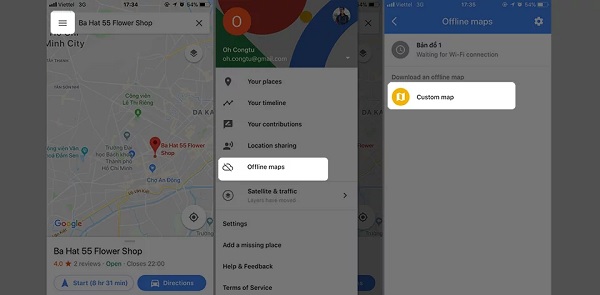 Bước 2: Chọn Menu > chọn Offline maps (Bản đồ ngoại tuyến) > chọn Custom map (Bản đồ tùy chỉnh).