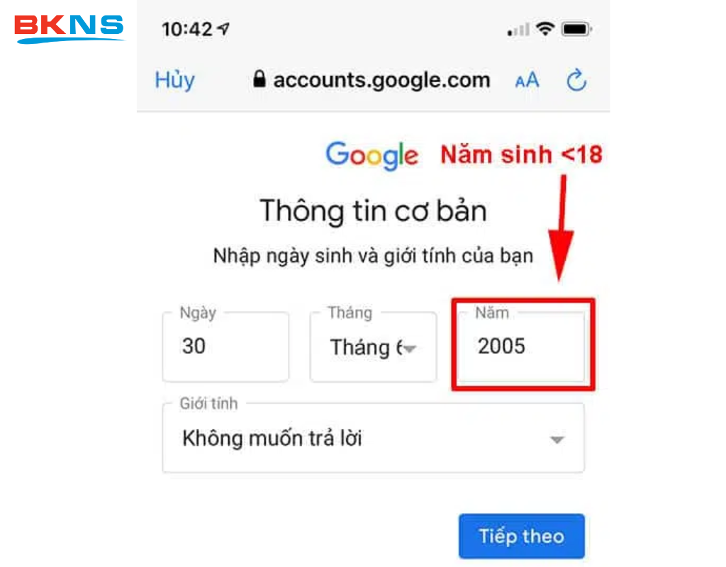 Bước 7: Nhập năm sinh sao cho nhỏ hơn 18 tuổi