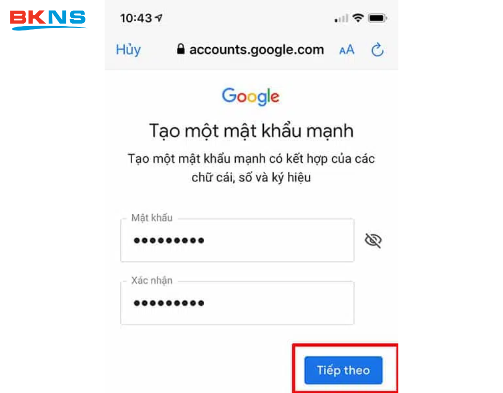 Bước 9: Điền và xác nhận mật khẩu email