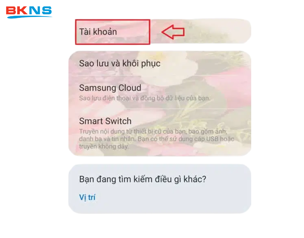 Bước 2: Chọn Tài khoản và sao lưu