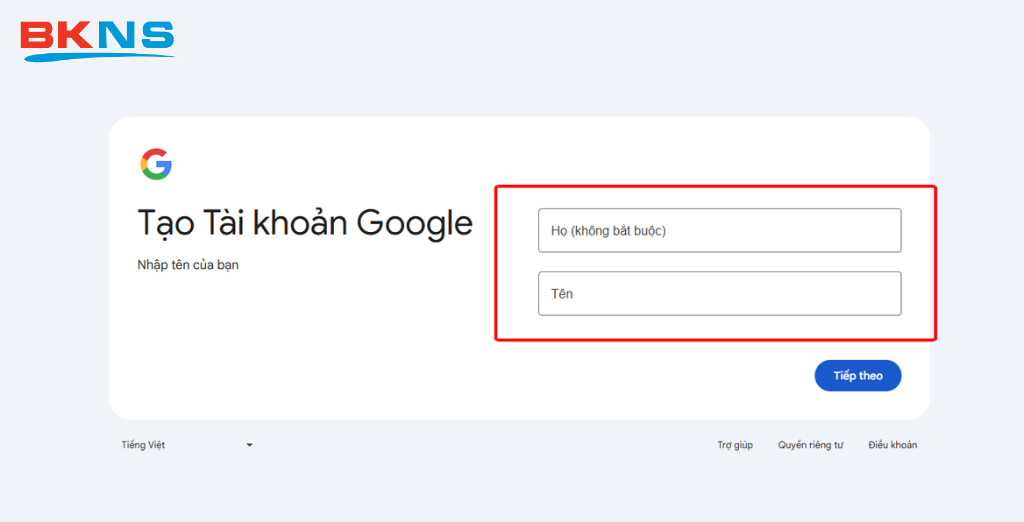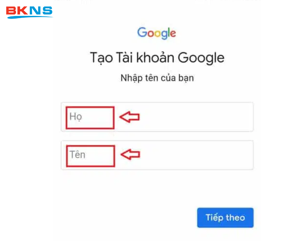Bước 6: Điền thông tin gồm họ, tên rồi nhấn Tiếp theo