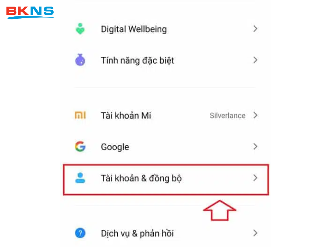 Bước 2: Chọn Tài khoản và đồng bộ