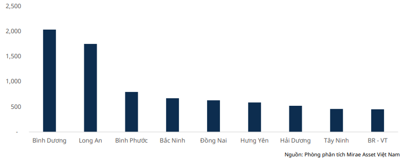 Nguồn cung đất công nghiệp dự kiên của các tỉnh trong năm 2022 (ha)