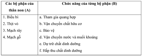 Câu 15: Chức năng mạch gỗ của thân cây là