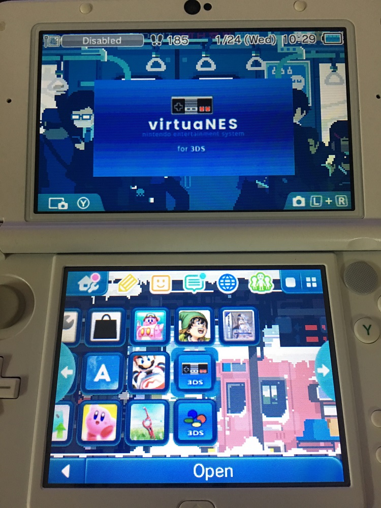 NES (Nintendo Entertainment System) hay Famicom, còn gọi là "điện tử 4 nút", đã gắn liền với tuổi thơ của rất nhiều người Việt Nam. Giờ đây với giả lập VirtualNES, mọi người có thể chơi bất kì game NES nào trên máy 2DS/3DS của mình. Điểm đặc biệt của dòng 2DS/3DS đó là có độ phân giải tương tự tivi cổ hồi xưa (320x240) nên trải nghiệm NES trên 2DS/3DS với chế độ pixel perfect sẽ cho bạn hình ảnh giống hệt như chơi trên tivi, không bị co giãn hay bóp méo.