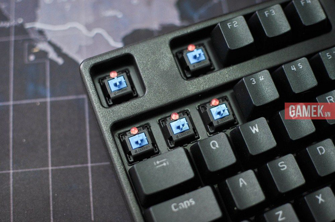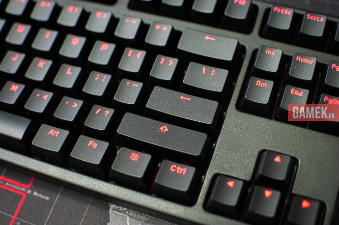 Phiên bản mà chúng tôi thử nghiệm được trang bị switch Cherry MX Brown, cảm giác gõ rất êm ái, và nếu những ngón tay của bạn đủ tinh tế để nhận ra nấc kích hoạt switch nhận phím vào máy tính, nhưng về cơ bản so với blue switch, phiên bản brown êm ái và ít tiếng ồn hơn rất nhiều. Đó cũng là lý do ngày càng nhiều game thủ Việt lựa chọn để cày đêm, bên cạnh những thiết kế bàn phím cơ bắt mắt, hầm hố.