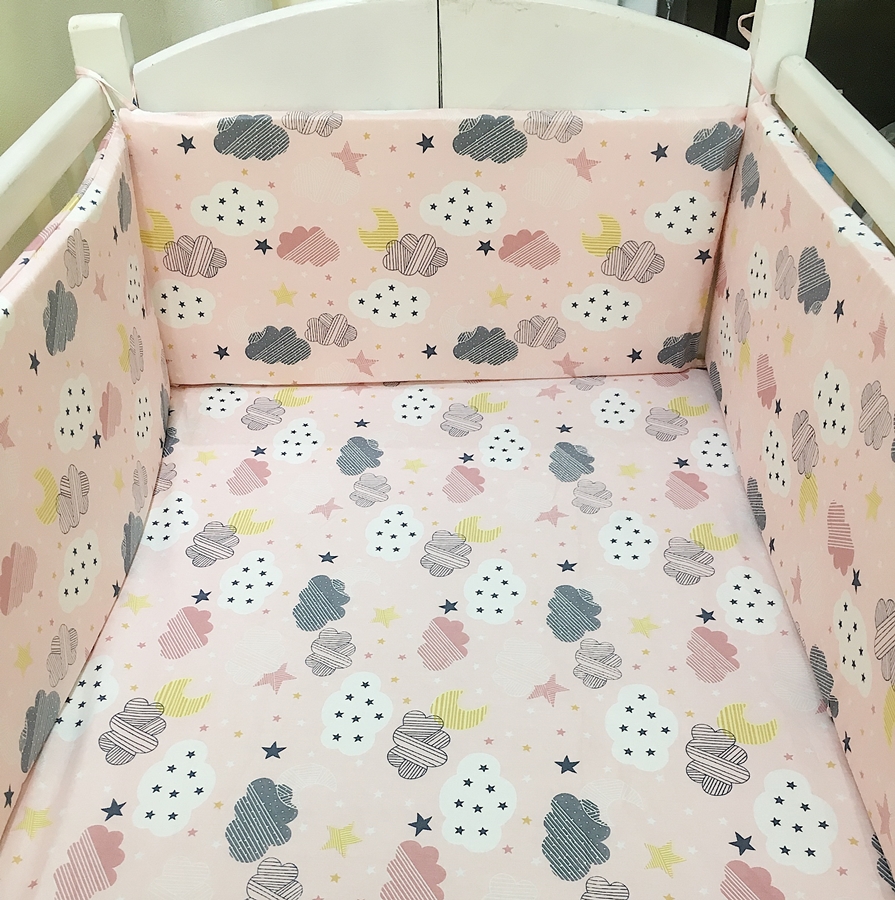 4 Tấm Quây Cũi Và Ga Chun Bọc đệm Mẫu Mây Hồng | Tiki