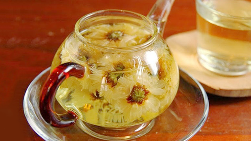- Đầu tiên cho hoa cúc vào nồi với nước và nấu sôi.