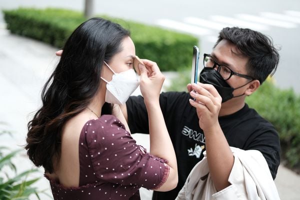 Khi giơ điện thoại lên và bật phần khung lưới camera lên, anh em cần chủ ý để bạn gái ở vị trí 1/3 khung hình. Đây là một hiệu ứng bố cục dễ sử dụng và áp dụng với cả chụp ảnh trên điện thoại lẫn máy ảnh.