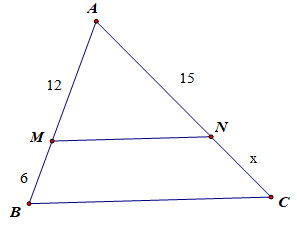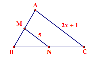 Câu 3 : Cho MN là đường trung bình của tam giác ABC trong hình vẽ bên. Tìm giá trị của x.