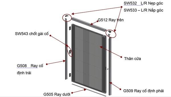 - Cấu tạo chi tiết từng bộ phận cửa lưới chống muỗi dạng lùa