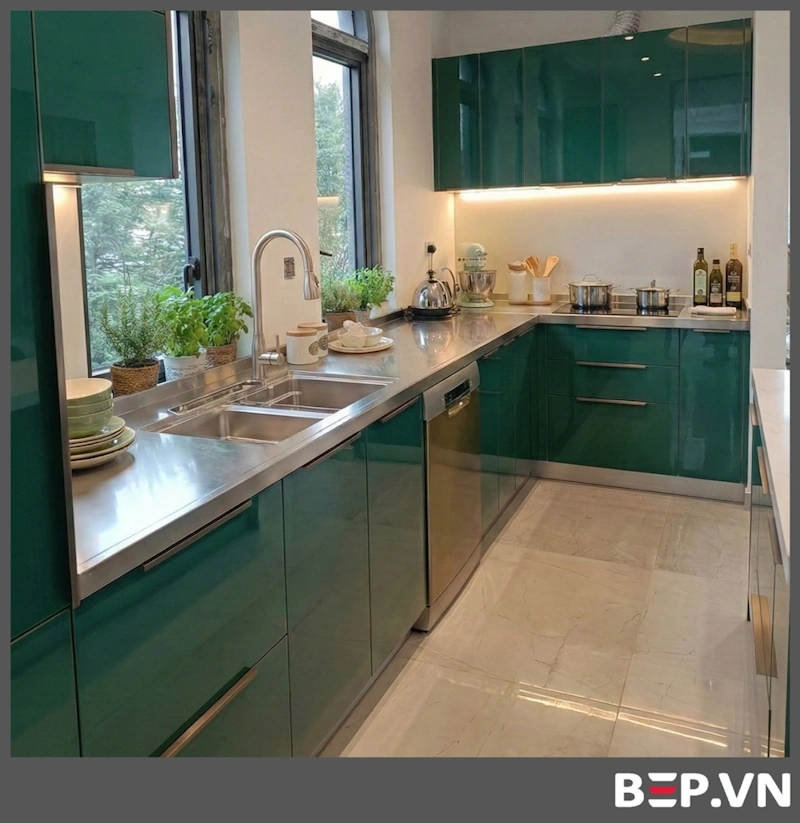 Tủ Bếp Inox Cánh Acrylic: Mang đến vẻ đẹp bóng bẩy, hiện đại và đa dạng màu sắc. Chất liệu Acrylic có khả năng chống trầy xước, chống ẩm mốc và dễ dàng vệ sinh.