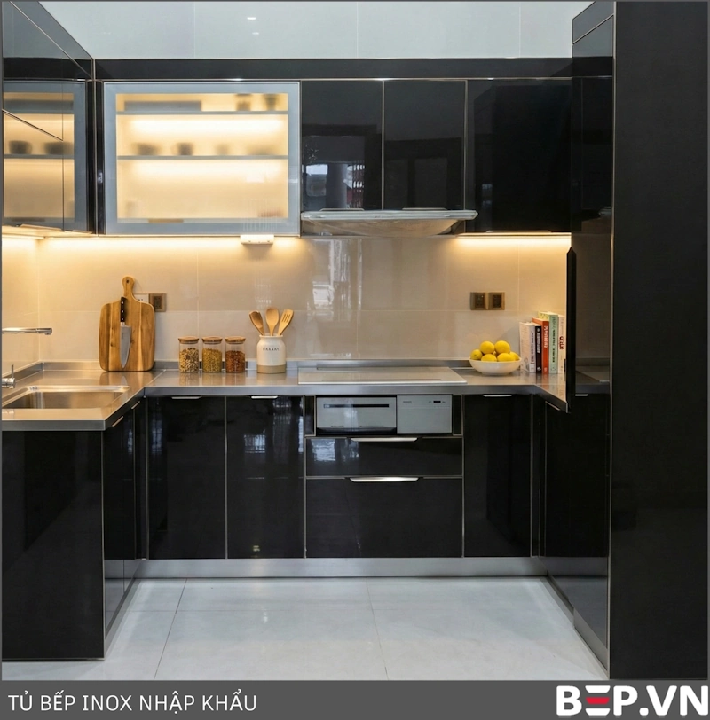 | Tủ Bếp Inox 304 (Thùng Inox) – Cánh Acrylic/Laminate(Kết hợp độ bền inox và thẩm mỹ cánh) | 11.000.000 – 14.500.000+ |