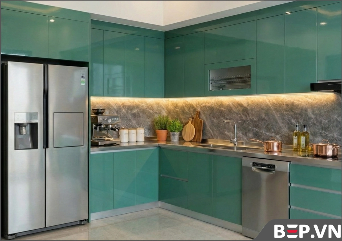 - Vệ sinh dễ dàng: Giúp duy trì không gian bếp luôn sạch sẽ, sáng bóng dù sử dụng thường xuyên.
