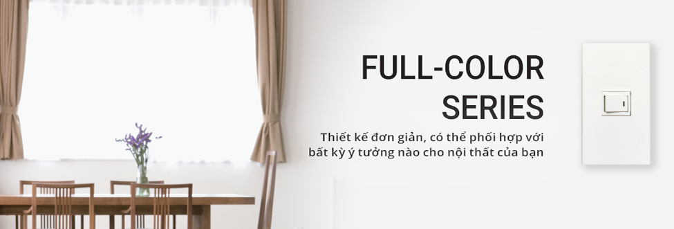 Công tắc ổ cắm Panasonic dòng Full Color là dòng sản phẩm đa dạng về chủng loại sản phẩm, màu sắc, độ bền cao. Full color chắc chắn là sự lựa chọn tối ưu nhất cho ngôi nhà của bạn.