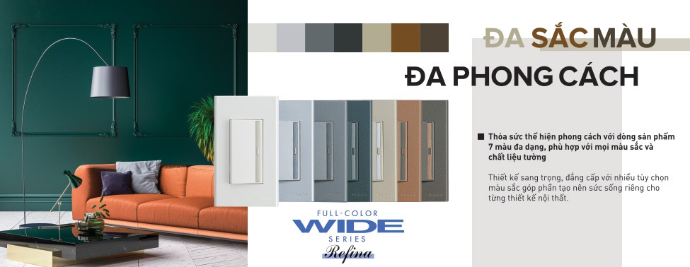 4. Công tắc ổ cắm Panasonic dòng Refina, đa sắc màu, đa phòng cách: