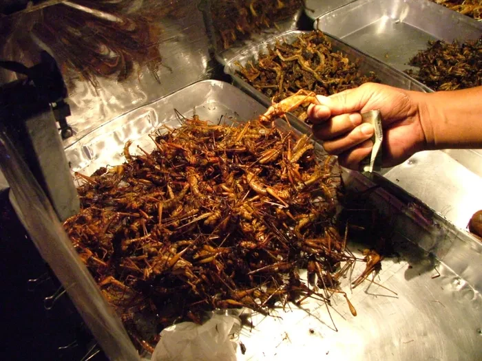Châu chấu và dế được xem là một món ăn nhẹ ở vùng Tây Phi. Ảnh: Internet