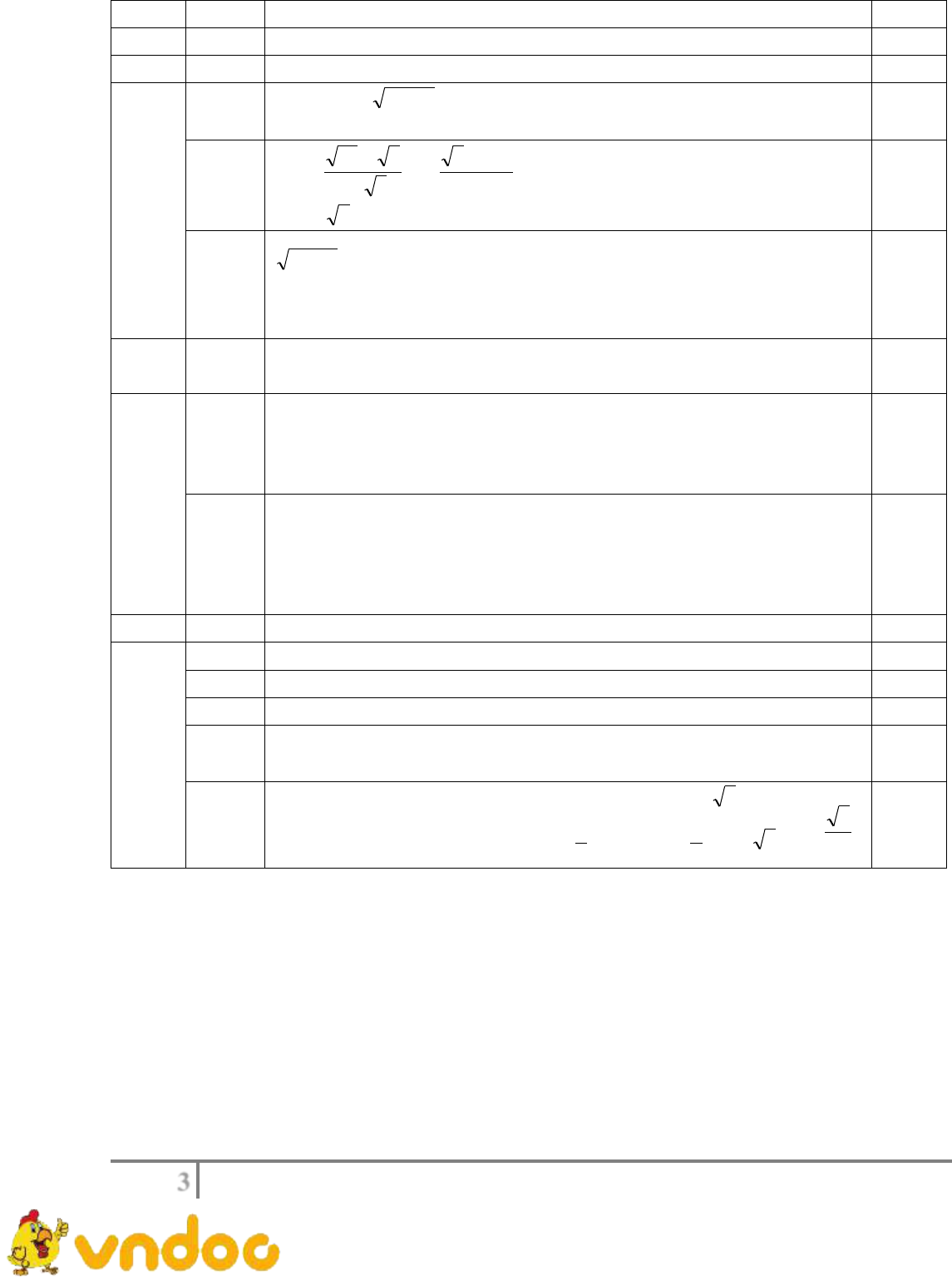 VnDoc.com 3ĐÁP ÁN ĐỀ SỐ 01Bài Câu Nội dungĐiểm1 a,b,c Trả lời đúng mỗi câu 0 Căn thức 63x có nghĩa 3x –6 0 3x 6 x 2 0,5 0,5 b A = 31515 = )13()13(5 = -5 0,5 0,5 c 453x 245304x 3x = 21 x = 7 0,25 0,25 3 2,5 a + Xác định đúng 2 điểm + Vẽ đúng đồ thị + Tính đúng góc 0,5 0,5 0,5 b 9375yxyx 93168yxx 32yx 0,5 0,5 4 3,5 Hình vẽ đúng 0,5 a ABC nội tiếp đường tròn đường kinh AB nên vuông tại C0,5 b C/m được BMC cân có góc CBM = 600 => BMC đều0,5 c C/m được COM = BOM (c.c.c) => MCOˆ= 900 nên MC là tiếp tuyến0,5 0,5 d C/m được OMBC tại E và tính được BC = R3 Tính được DT tứ giác OBDC = 21OD.BC = 21R. R3= R223 0,5 0,5 TUYỂN TẬP 60 ĐỀ THI HỌC KỲ I TOÁN 9 Thành công có duy nhất một điểm đến nhưng có rất nhiều con đường để đi ,5 đ2 a 12,5,5 Tuyển tập 60 đề thi hk 1 lớp 9 môn Toán