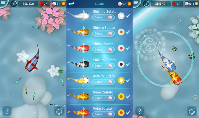 Đến với Zen Koi, người chơi cũng sẽ được tham gia vào một cuộc phiêu lưu kỳ thú trong môi trường nước. Nhiệm vụ của người chơi là nuôi, cho cá ăn và thu thập đủ những chú cá Koi đầy màu sắc trong một tựa game mô phỏng sinh động, đáng yêu của hãng LandShark Games.