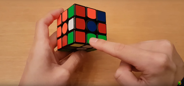 Ví dụ như trong hình, bạn muốn đưa viên cạnh màu (trắng-đỏ) về đúng vị trí ở mặt trước nhưng màu trắng đang hướng ra mặt bên.