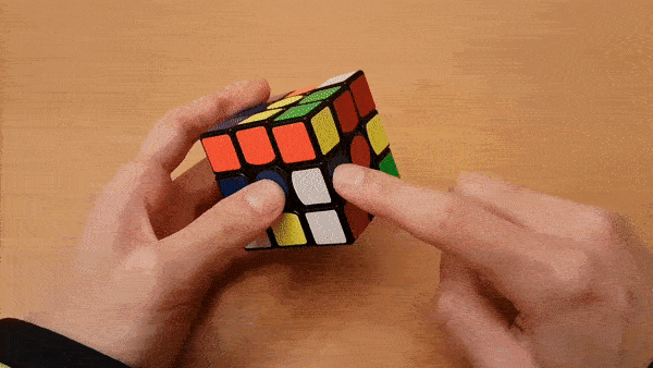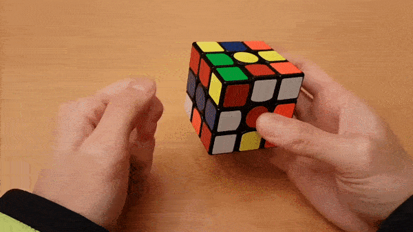 ▪️ Hãy đặt cube trong tay với mặt trắng ở đáy, mặt cam ở phía trước và thực hiện các bước <L’ D R’ F’>.