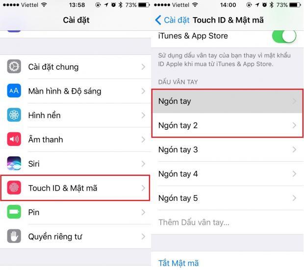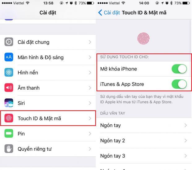 Tắt hay bật Touch ID khi mở khóa màn hình hoặc tải ứng dụng