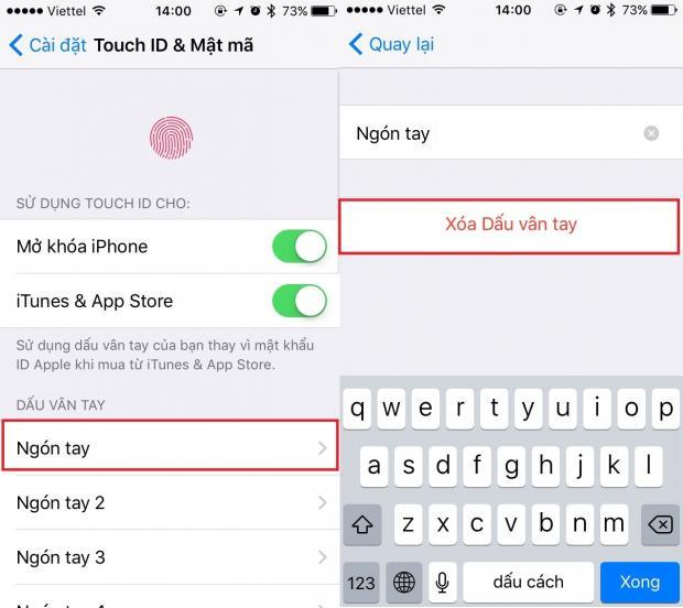 Dĩ nhiên thiết lập được thì sẽ xóa được, chỉ cần chọn dấu vân tay muốn xóa và nhấp vào dòng chữ đỏ Xóa dấu vân tay, là người dùng đã xóa được dấu vân tay đó khỏi thiết bị của mình.