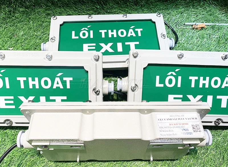 Đèn Exit chống cháy nổ hiển thị chỉ dẫn thoát hiểm rõ ràng, hoạt động liên tục ngay cả khi mất điện, giúp đảm bảo an toàn cho công trình và tuân thủ quy định PCCC. Dòng đèn exit chống nổ chuyên dùng cho lối thoát hiểm, hành lang an toàn, nhà xưởng.