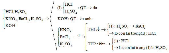 b) Sử dụng thêm một thuốc thử để nhận biết 6 ống nghiệm không dán nhãn, mỗi ống nghiệm chứa một trong các dung dịch sau: HCl, H2SO4, KNO3, KOH, BaCl2, K2SO4. Viết các phương trình phản ứng xảy ra.