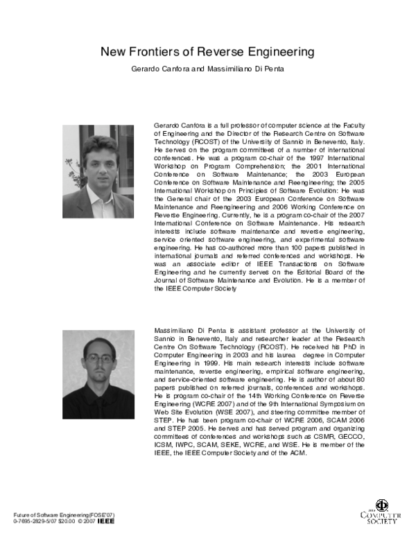 Frontiers of reverse engineering: A conceptual modelGerardo Canfora