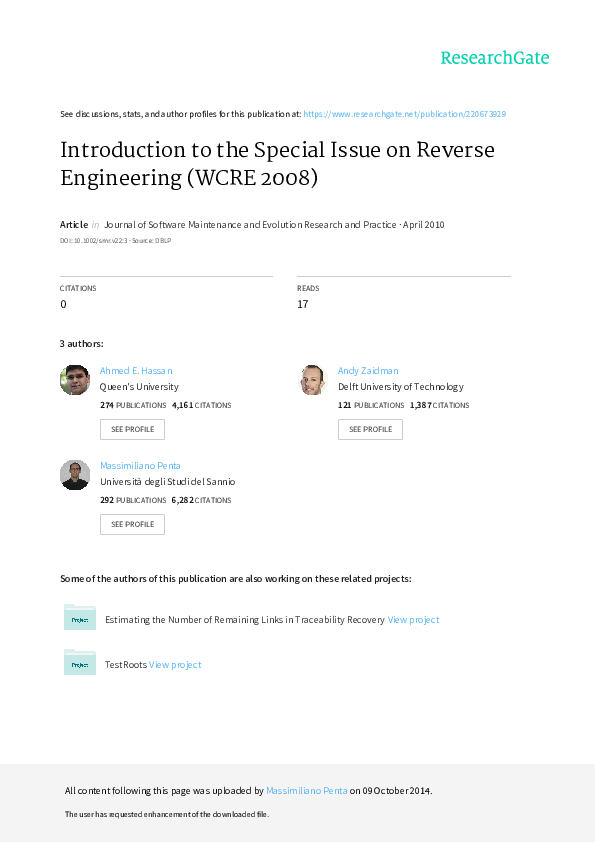 Introduction to the special issue on reverse engineering (WCRE 2008)