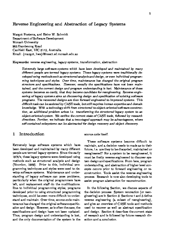 Reverse Engineering and Abstraction of Legacy SystemsHeinz Schmidt