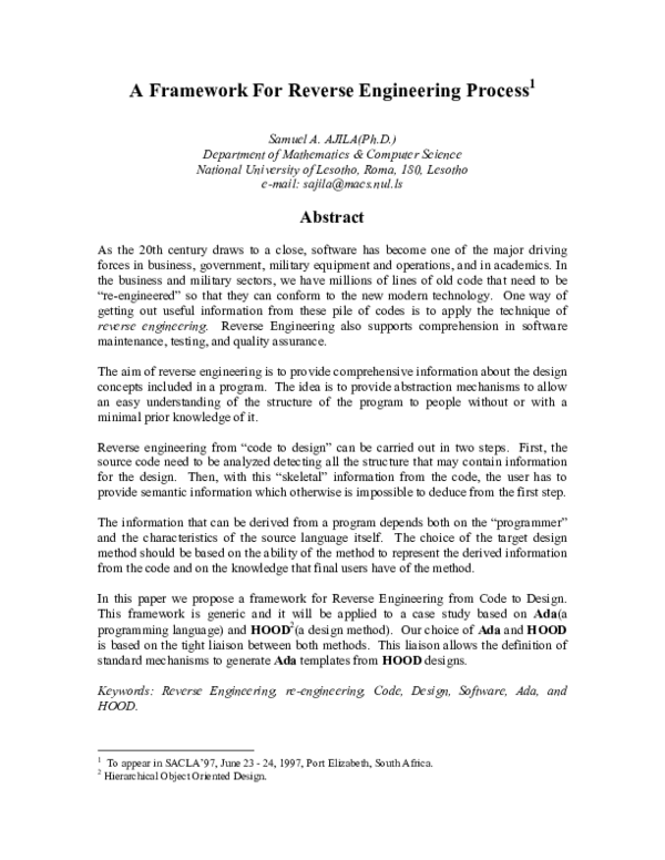A Framework For Reverse Engineering Process1Samuel A Ajila