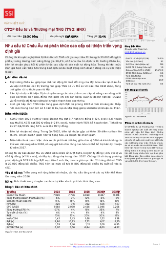 TNG: Khuyến nghị MUA với giá mục tiêu 22,500 đồng/cổ phiếuNguồn: ACBS Tải về 27/01/2026 |