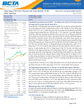 TCB: Khuyến nghị MUA với giá mục tiêu 43,500 đồng/cổ phiếuNguồn: BSC Tải về 28/01/2026 |