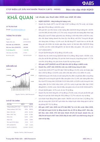 NT2: Khuyến nghị KHẢ QUAN với giá mục tiêu 29,500 đồng/cổ phiếuNguồn: ABS Tải về 27/01/2026 |