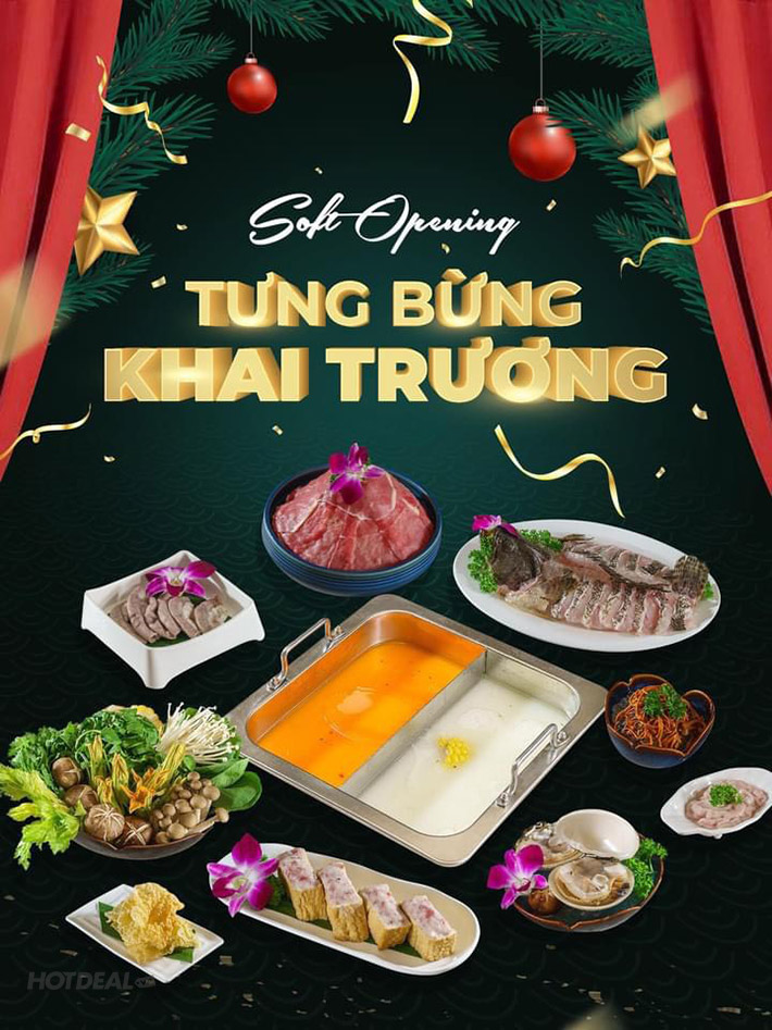 - Khách hàng lựa chọn 2 hương vị lẩu sau: Lẩu nấm/ Lẩu xí quách/ Lẩu thuốc Bắc/ Lẩu đậu phộng/ Lẩu Tomyum/ Lẩu Tứ Xuyên