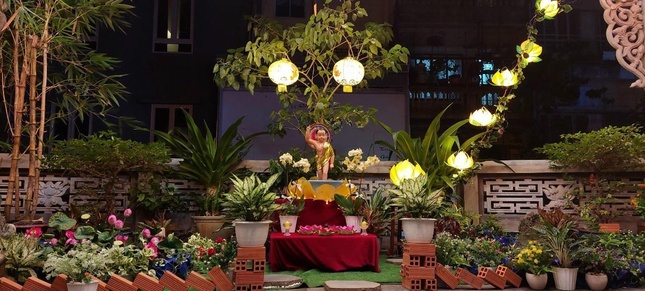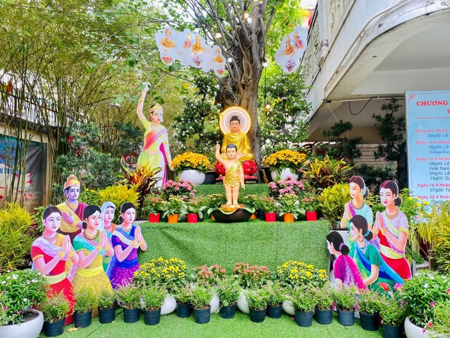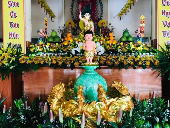 * Bàn Phật đản sanh được trang trí tại chùa Bồ Đề (phường 24):