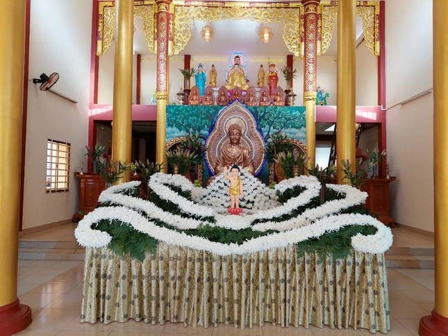 * Trang nghiêm bàn Phật đản sanh tại chùa Liên Ứng (phường 11):