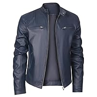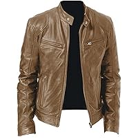 WULFUL Men's Vintage Stand Collar Leather Jacket Motorcycle PU Faux Leather Outwear, khaki 1, S (1419) . Nhật 2,048,769đ