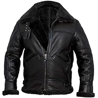 Bold Threadz WWII Aviator RAF Real Pitch Black Cockpit Pilot B3 Military Black Bomber Jacket with Genuine Sheep Shearling 9,088,770đ